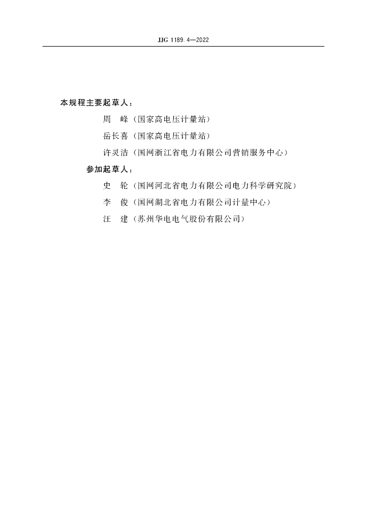 周峰(国家高电压计量站)、岳长喜(国家高电压计量站)、许灵洁(国网浙江省电力有限公司营销服务中心)、史轮(国网河北省电力有限公司电力科学研究院)、李俊(国网湖北省电力有限公司计量中心)、汪建(苏州华电电气股份有限公司)