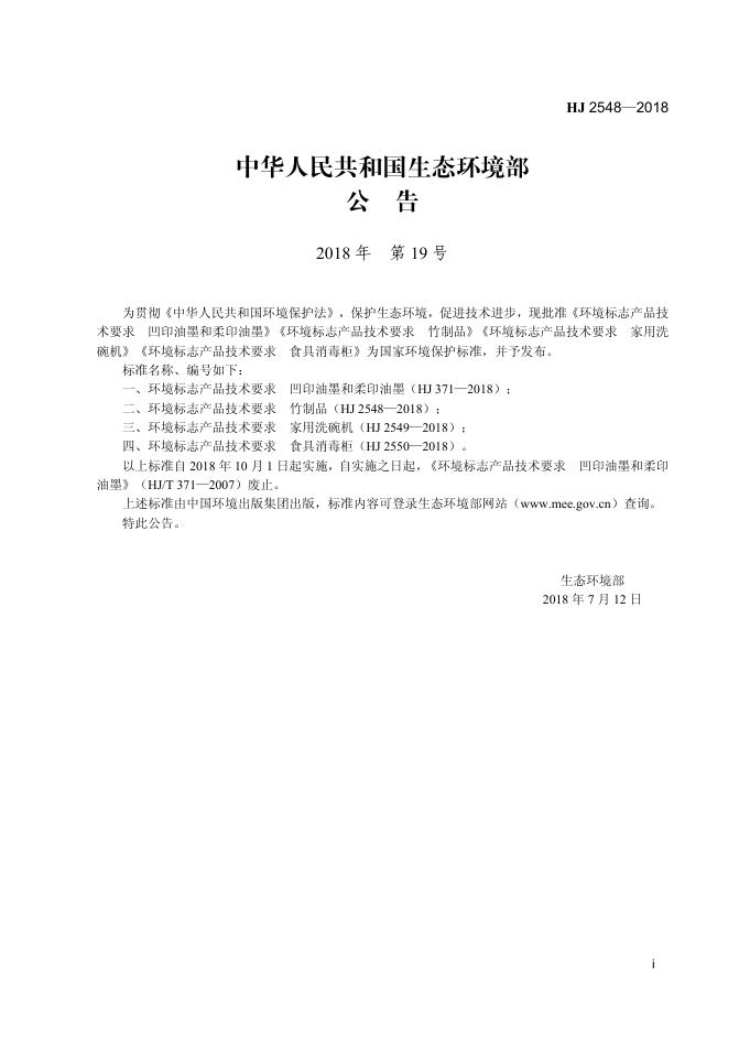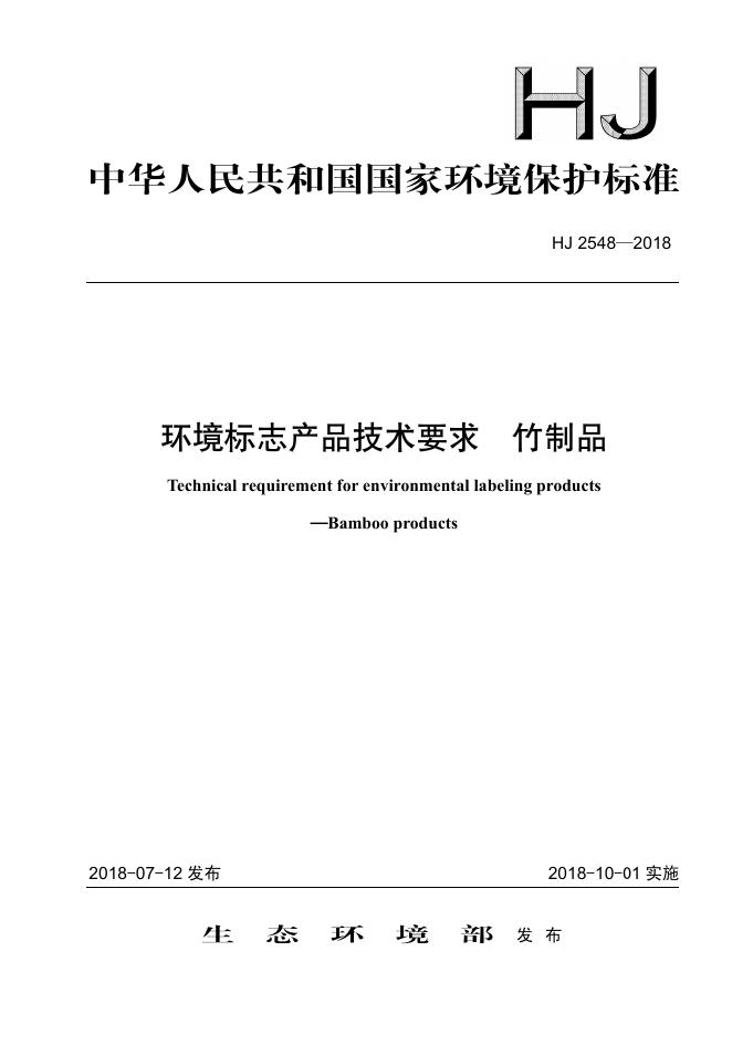 HJ 2548-2018 环境标志产品技术要求 竹制品