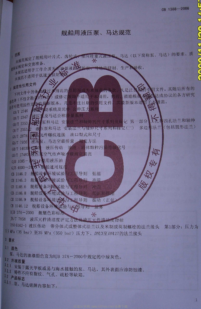 CB 1388-2008 舰船用液压泵、马达规范