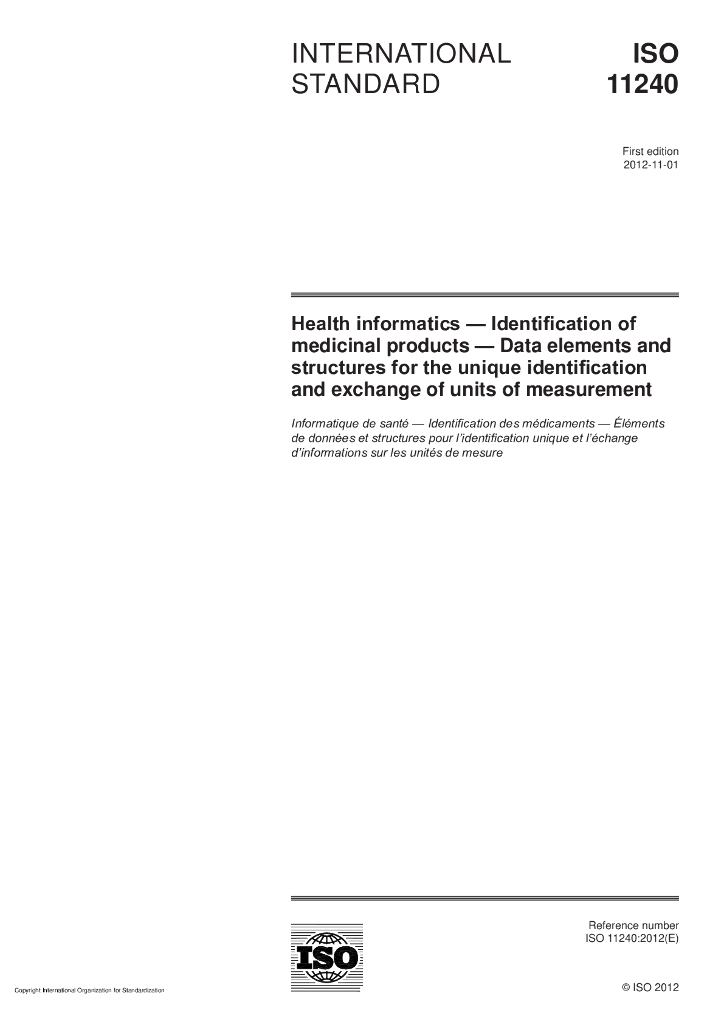 ISO 11240-2012 健康信息 药品鉴定 数据元素和结构的唯一性标识和交换的计量单位
