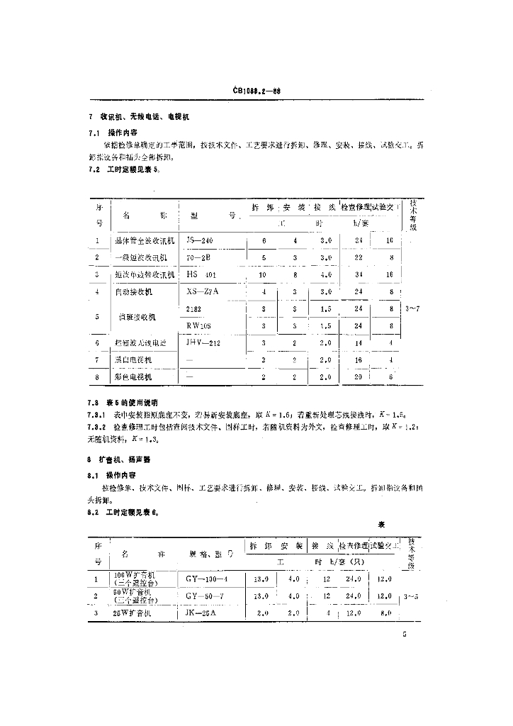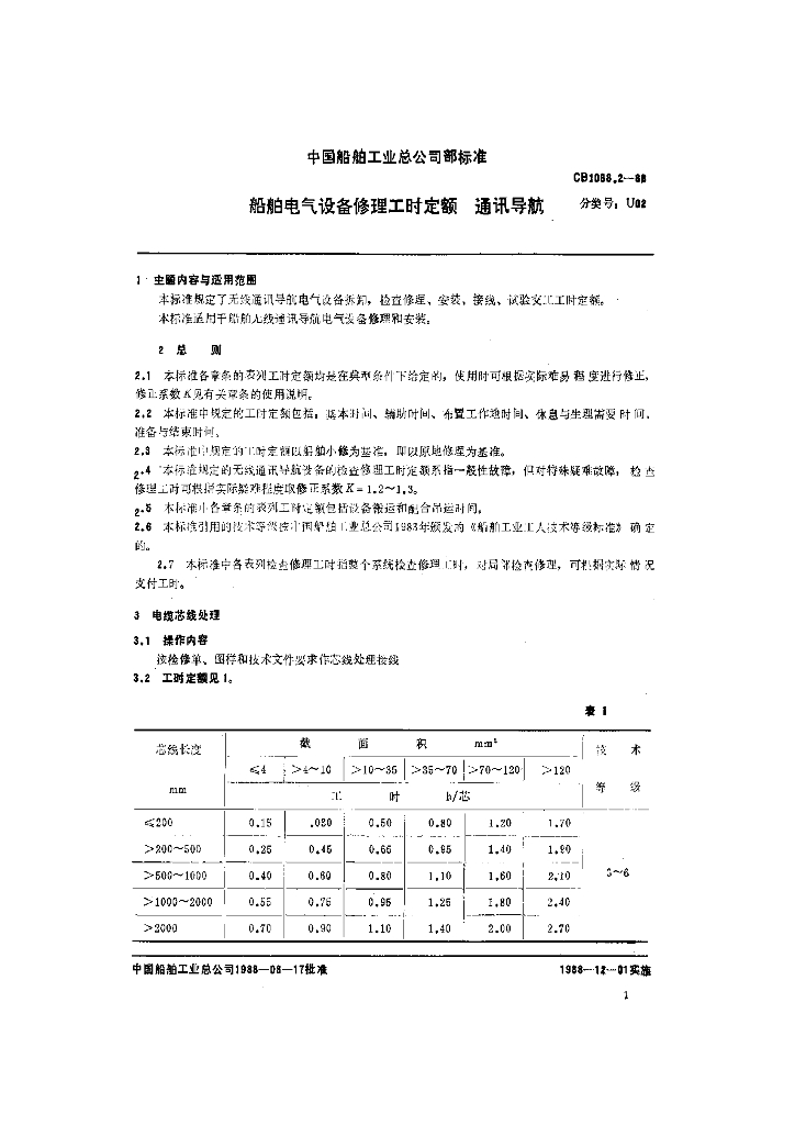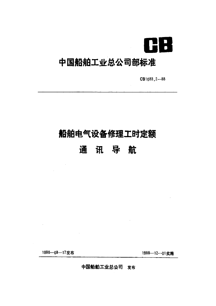 CB 1088.2-1988 船舶电气设备修理工时定额 通讯导航