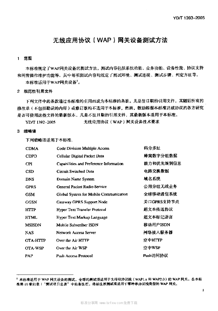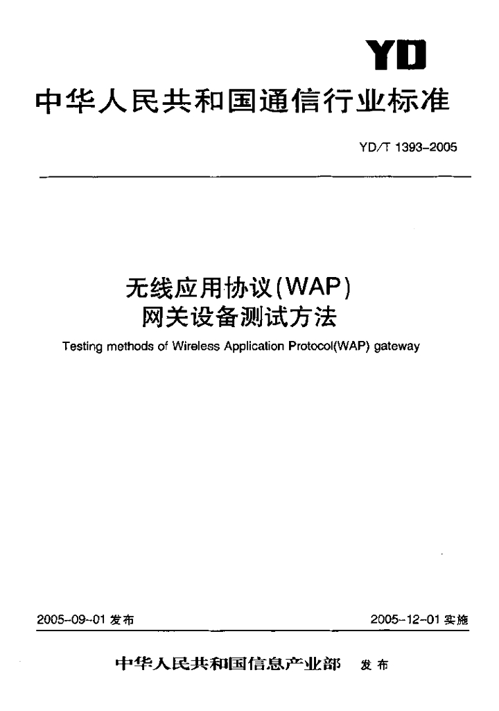 YD/T 1393-2005 无线应用协议(WAP)网关设备测试方法