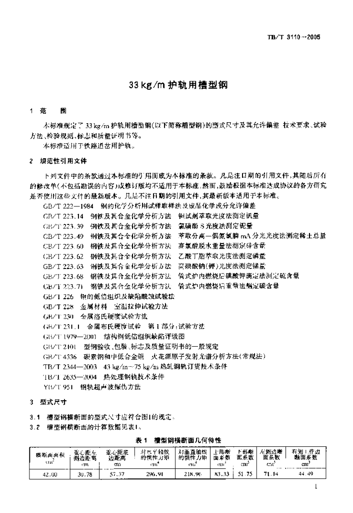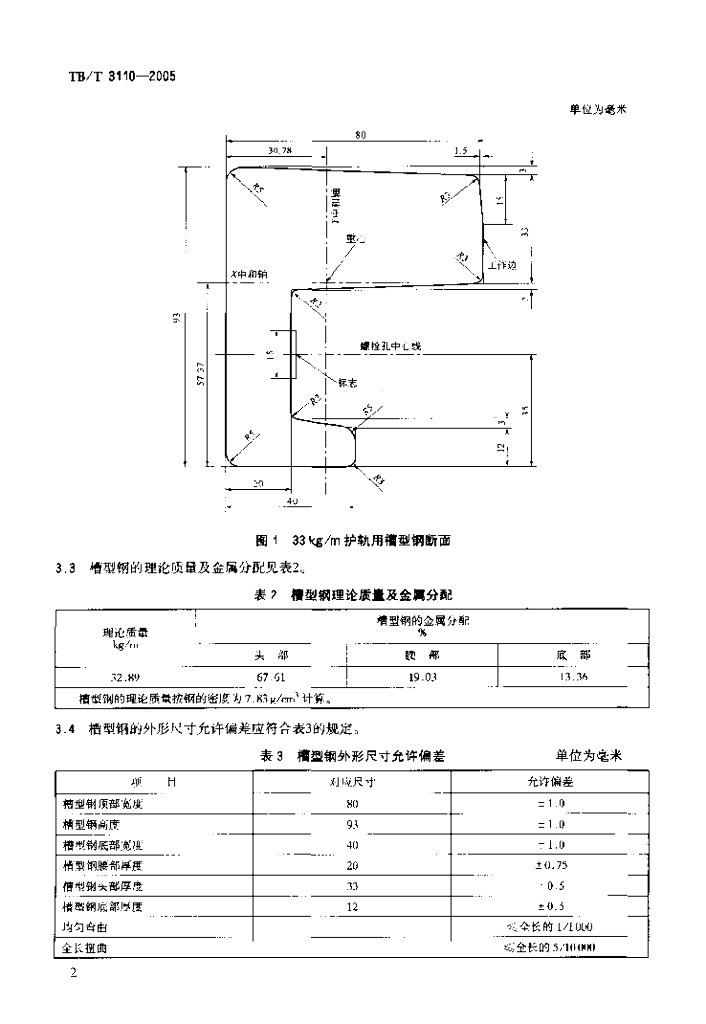 TB/T 3110-2005 33kg/m护轨用槽型钢