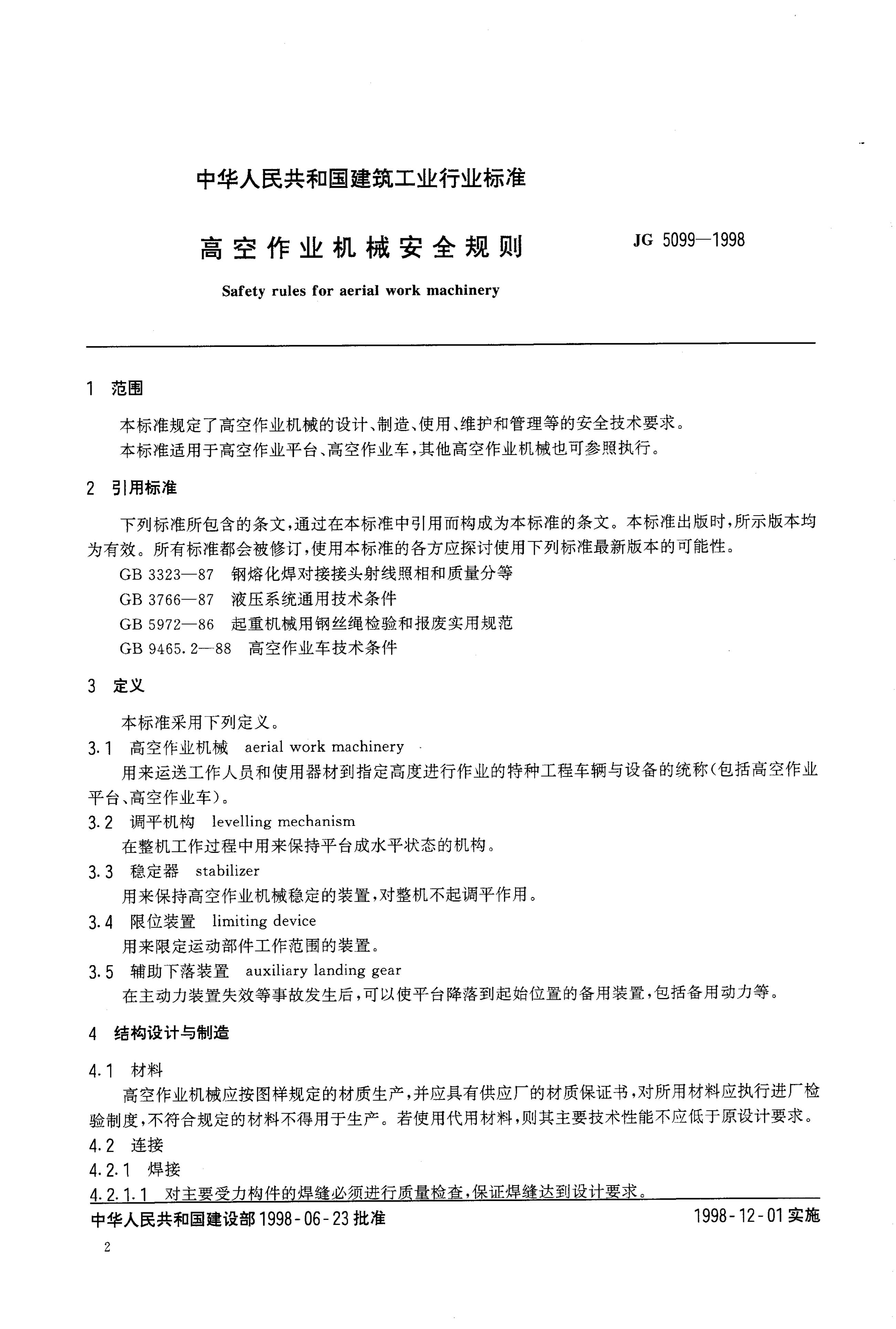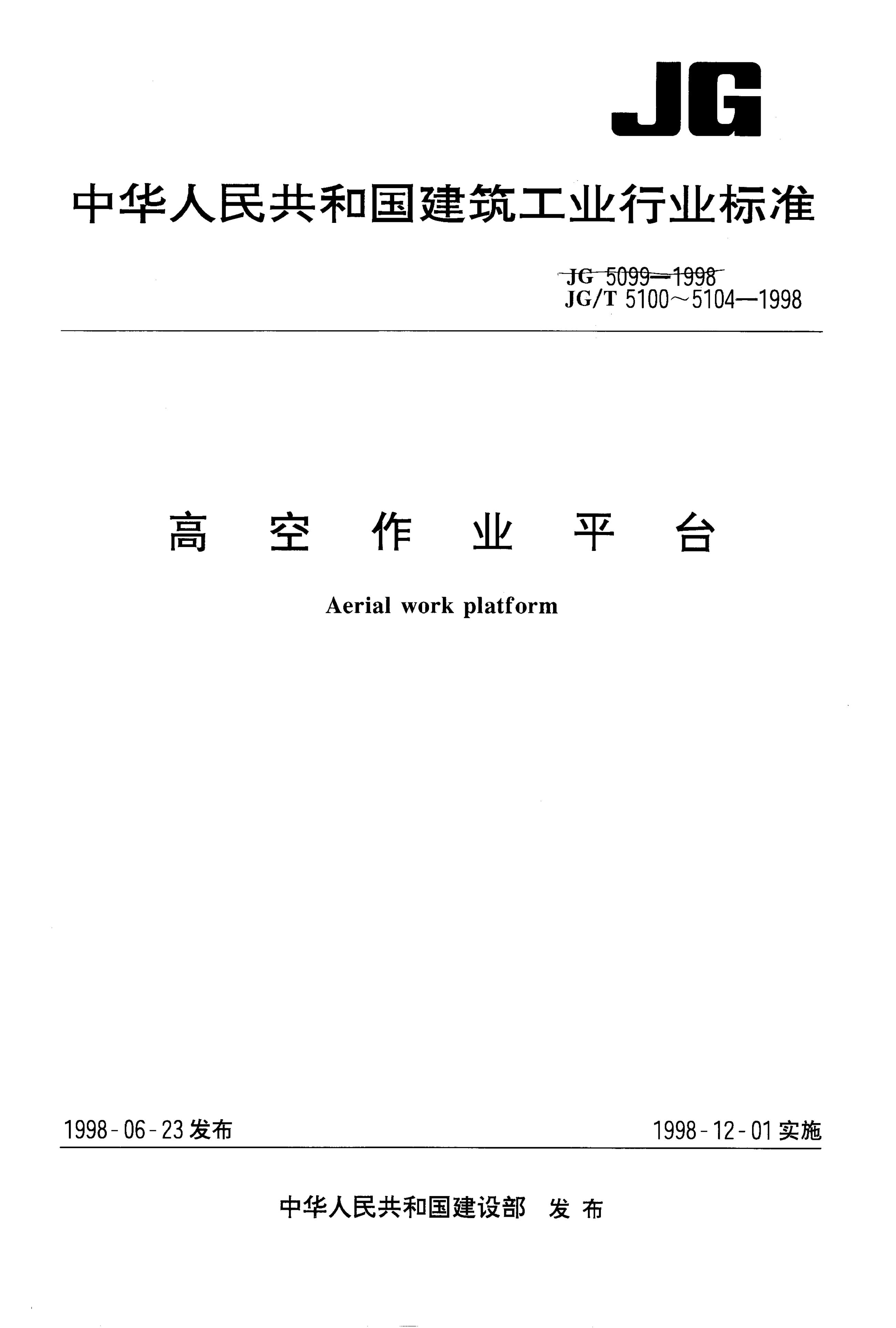 JG/T 5199-1998 高空作业机械安全规则