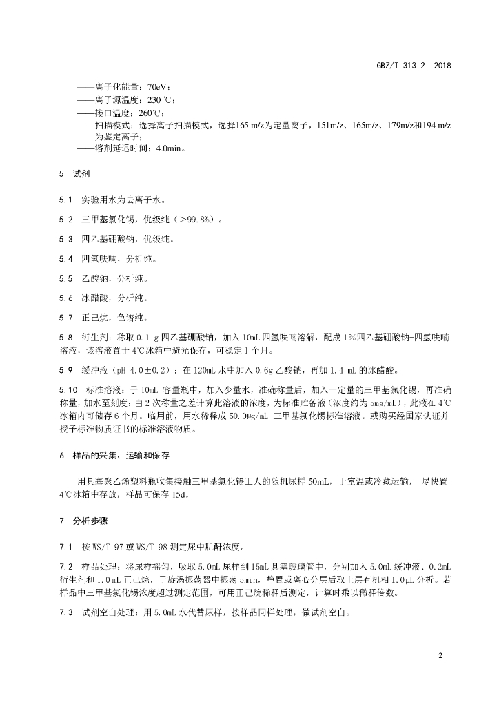 GBZ/T 313.2-2018 尿中三甲基氯化锡的测定 第2部分:气相色谱-质谱法