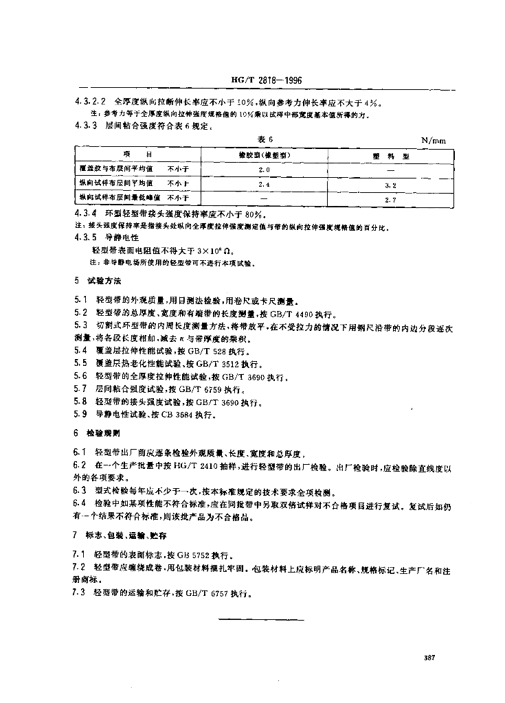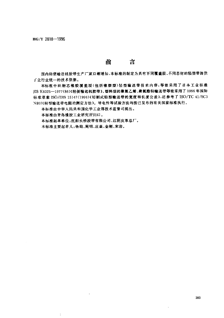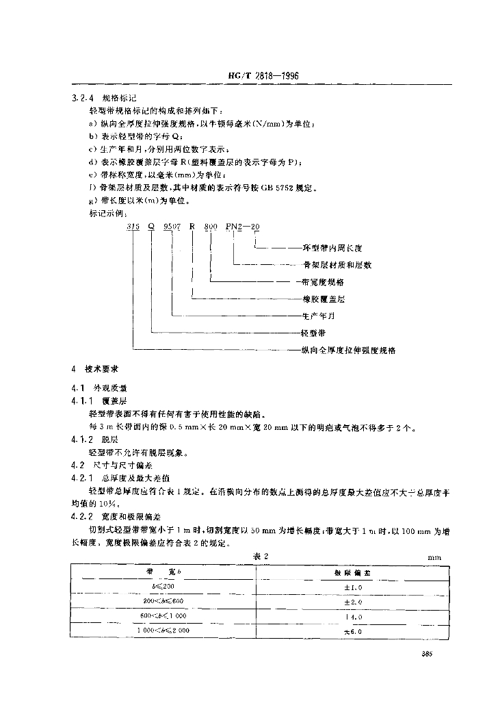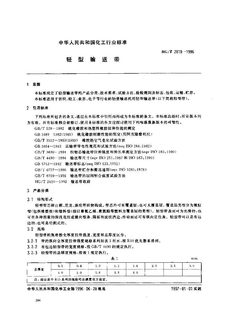 HG/T 2818-1996 轻型输送带