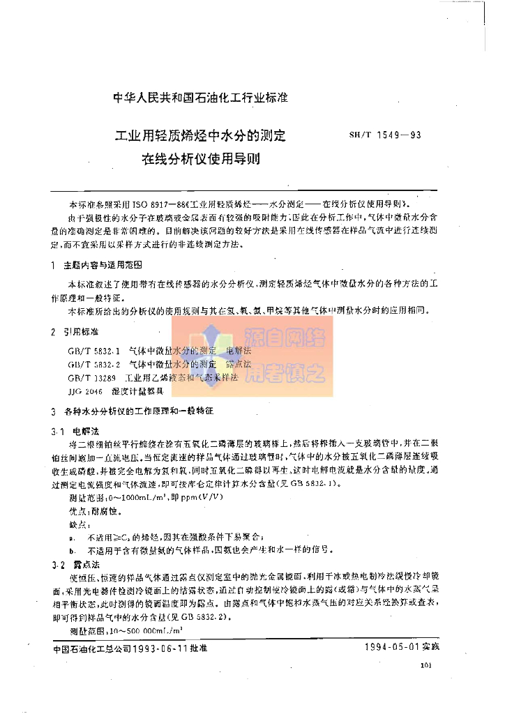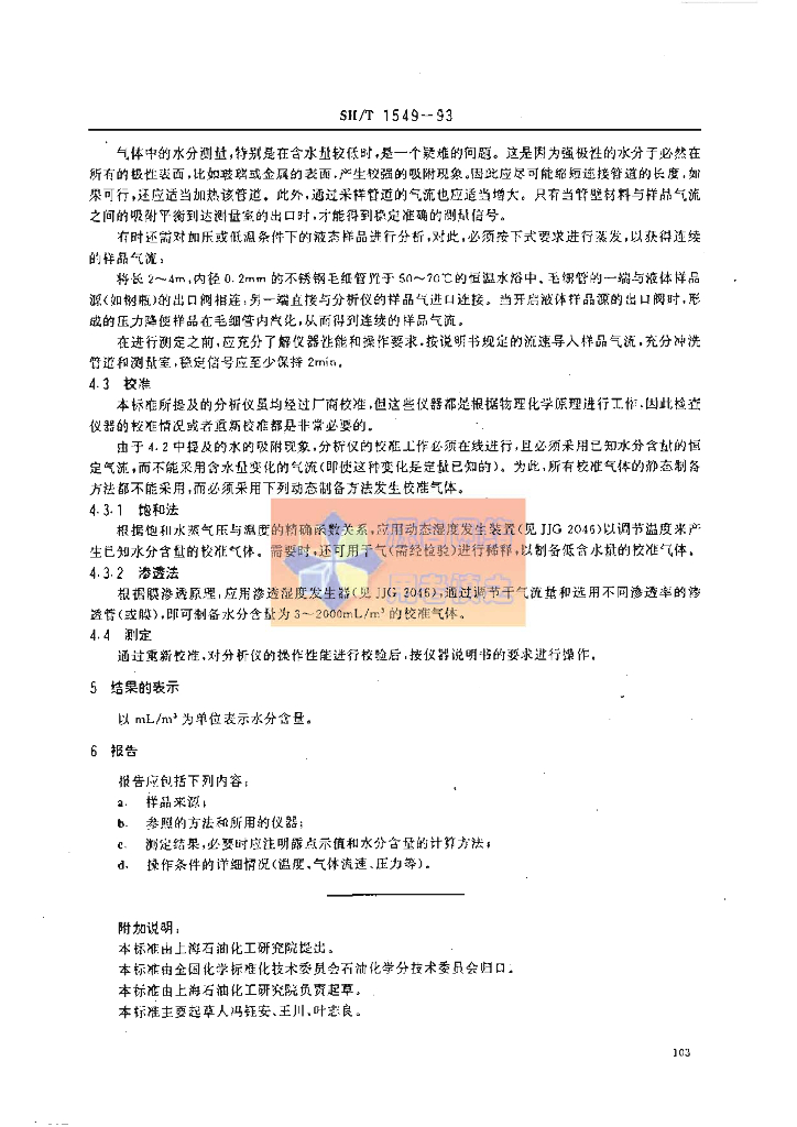 SH/T 1549-1993 工业用轻质烯烃中水分的测定 在线分析仪使用导则