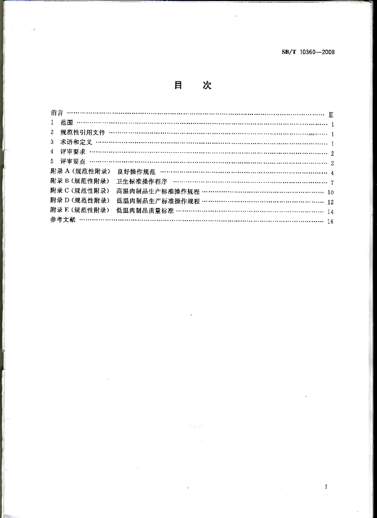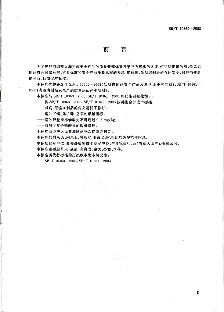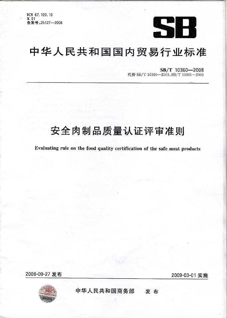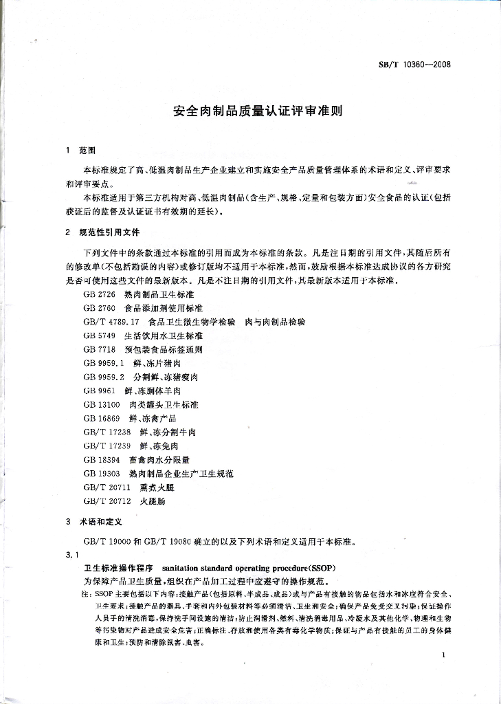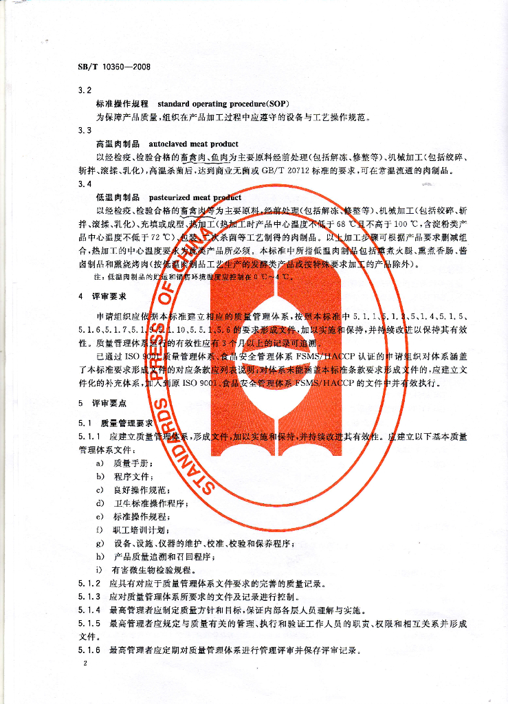 SB/T 10360-2008 安全肉制品质量认证评审准则