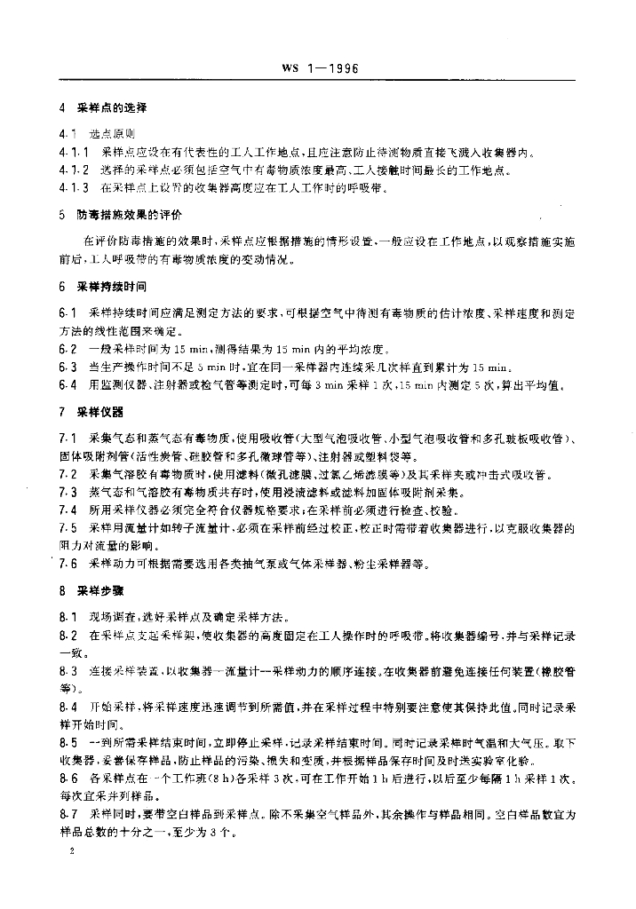 WS 1-1996 车间空气中有毒物质测定采样规范