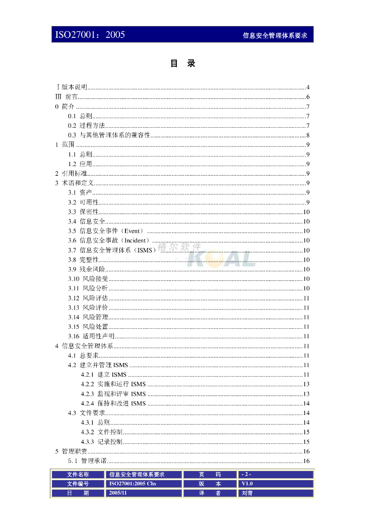 ISO 27001:2005 信息技术-安全技术-信息安全管理体系要求