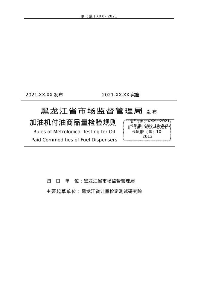 JJF(黑)13-2021 加油机付油商品量检验规则