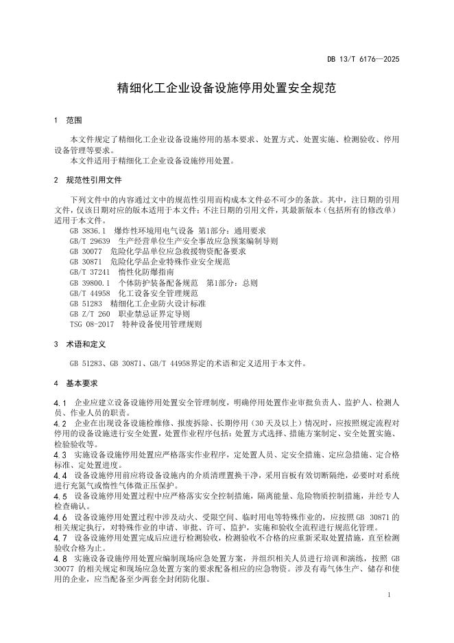 DB13/T 6176-2025 精细化工企业设备设施停用处置安全规范