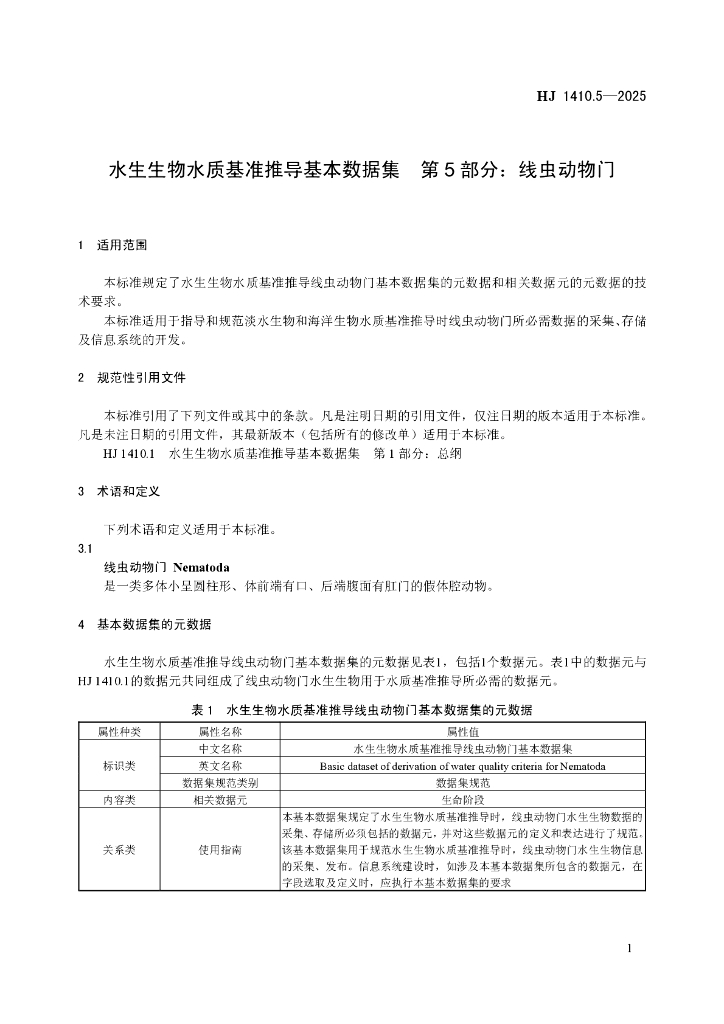 HJ 1410.5-2025 水生生物水质基准推导基本数据集 第5部分:线虫动物门
