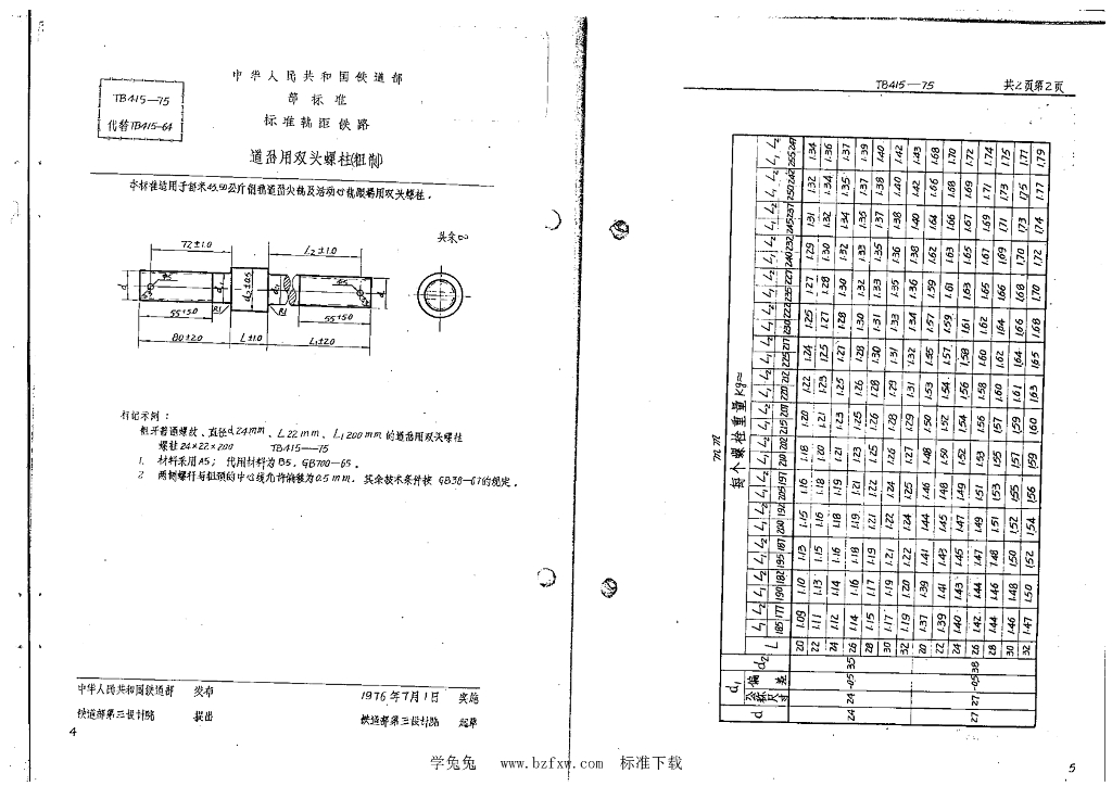 TB/T 415-1975 道岔用双头螺栓(粗制)