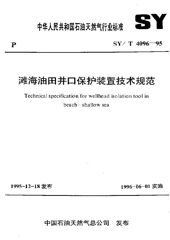 SY/T 4096-1995 滩海油田井口保护装置技术规范