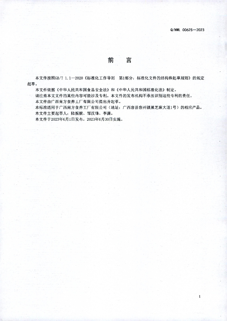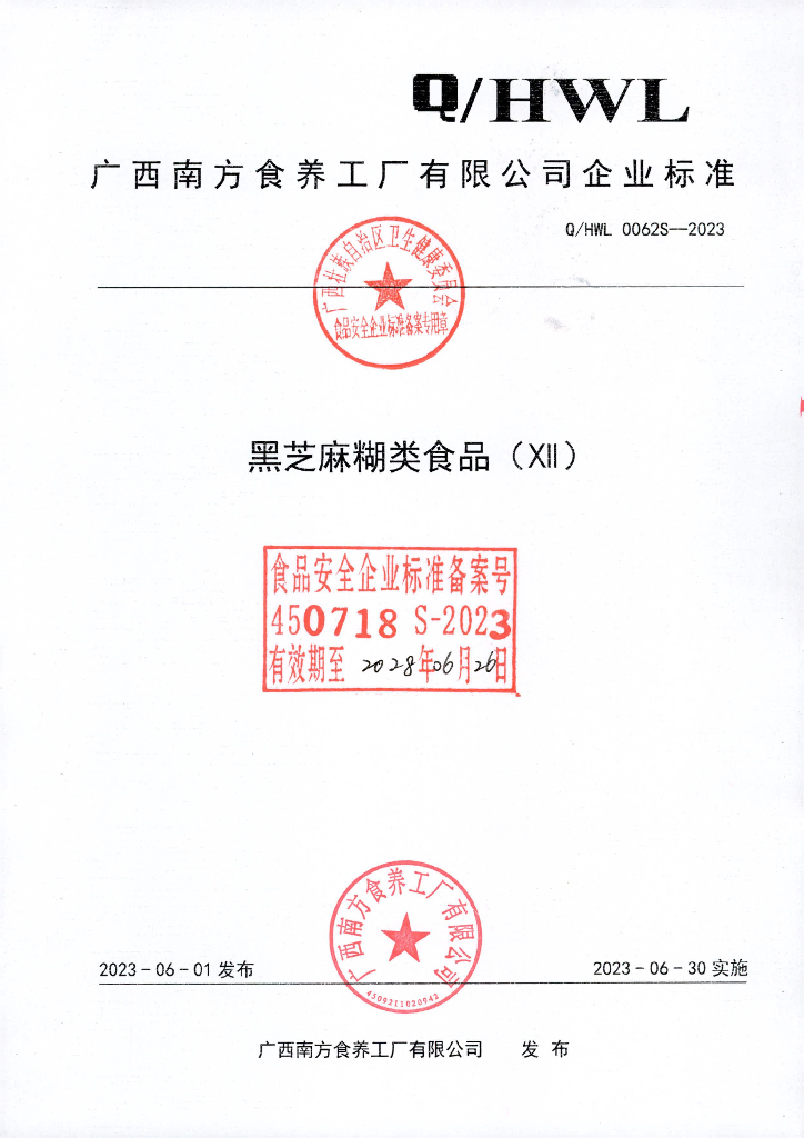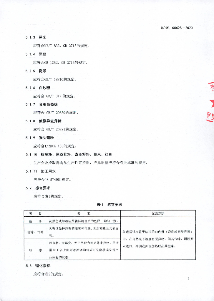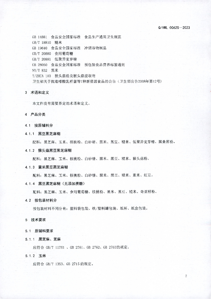 Q/HWL 0062S-2023 黑芝麻糊类食品(XII)