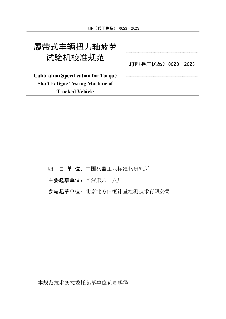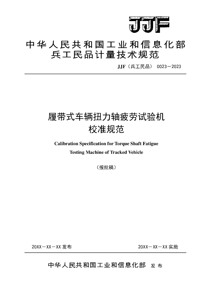 JJF(兵工民品)0023-2023 履带式车辆扭力轴疲劳试验机校准规范(报批稿)