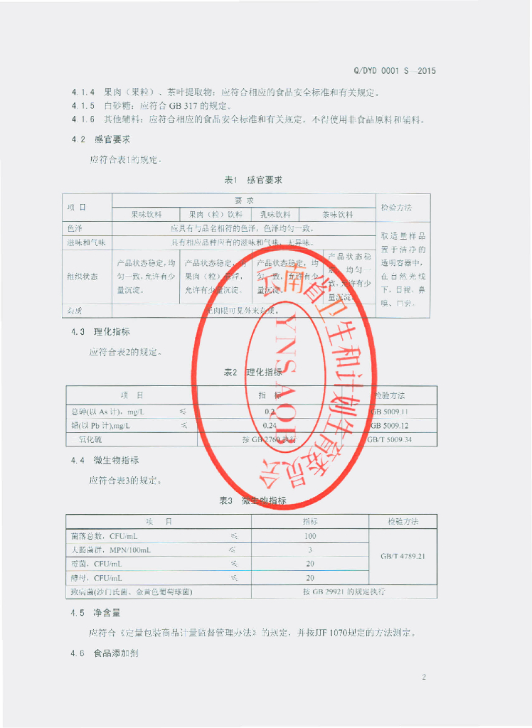 Q/DYD 0001S-2015 大理漾濞多多饮品有限公司 风味饮料