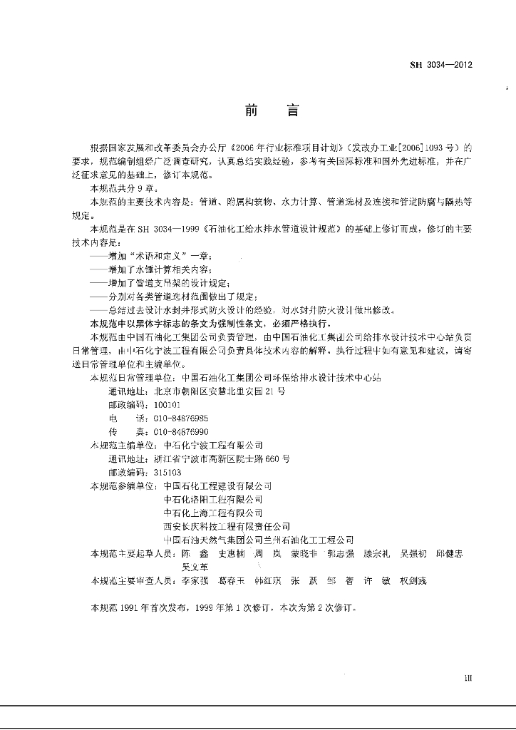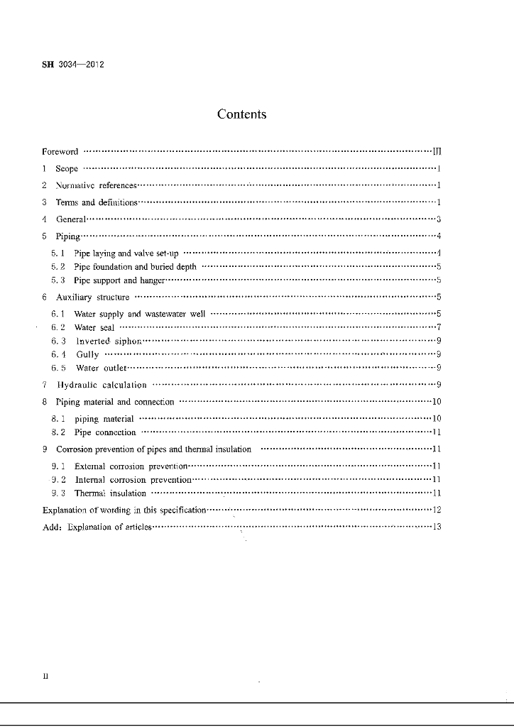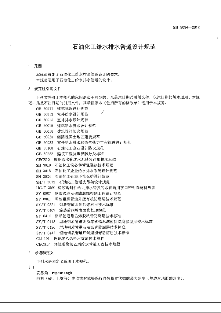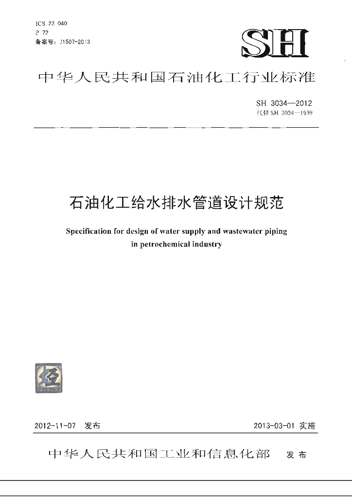 SH 3034-2012 石油化工给水排水管道设计规范