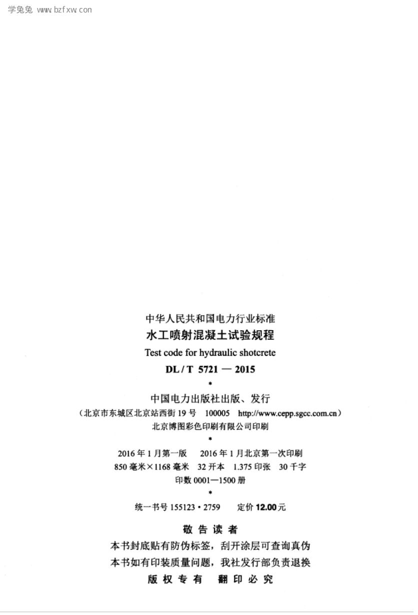 DL/T 5721-2015 水工喷射混凝土试验规程