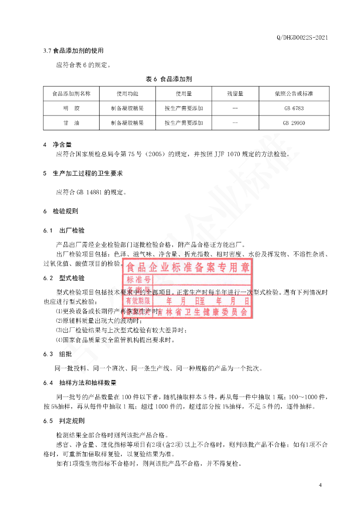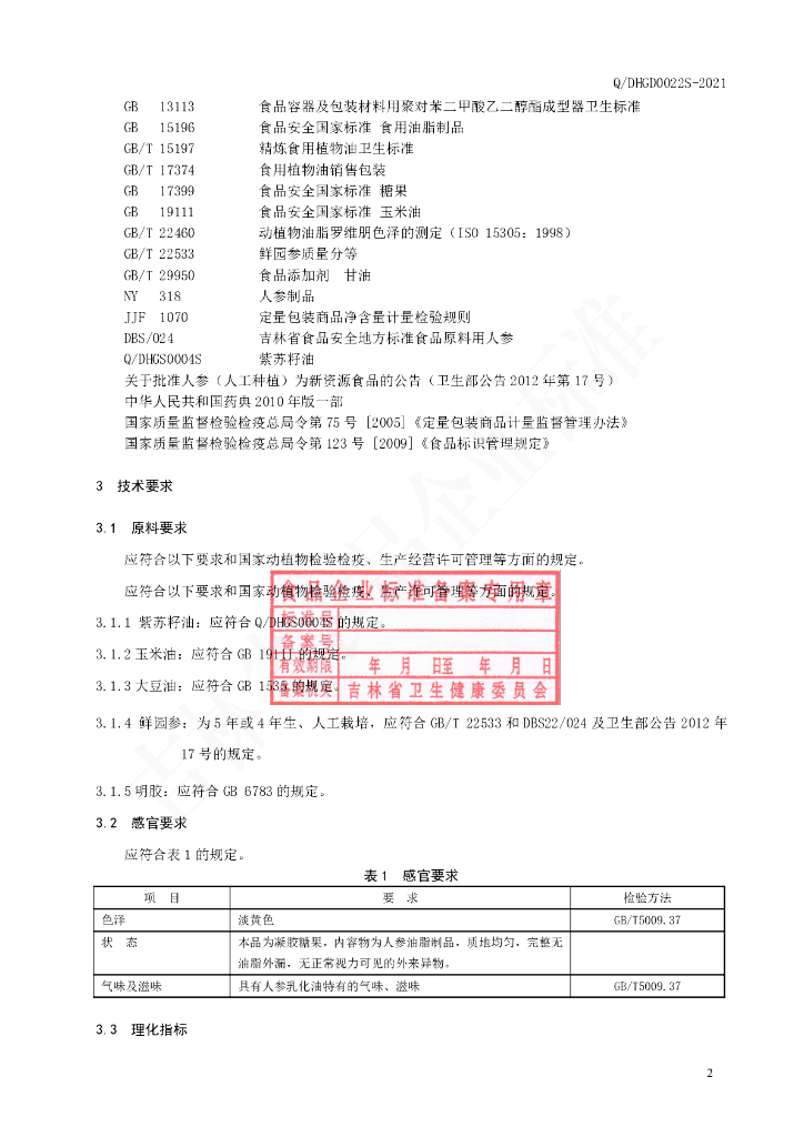 Q/DHGD 0022S-2021 人参油凝胶糖果