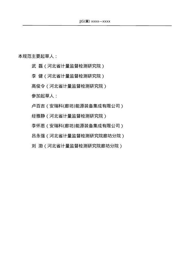 JJG(冀)XXXX-XXXX 压缩氢气加气柱检定规程(报批稿)