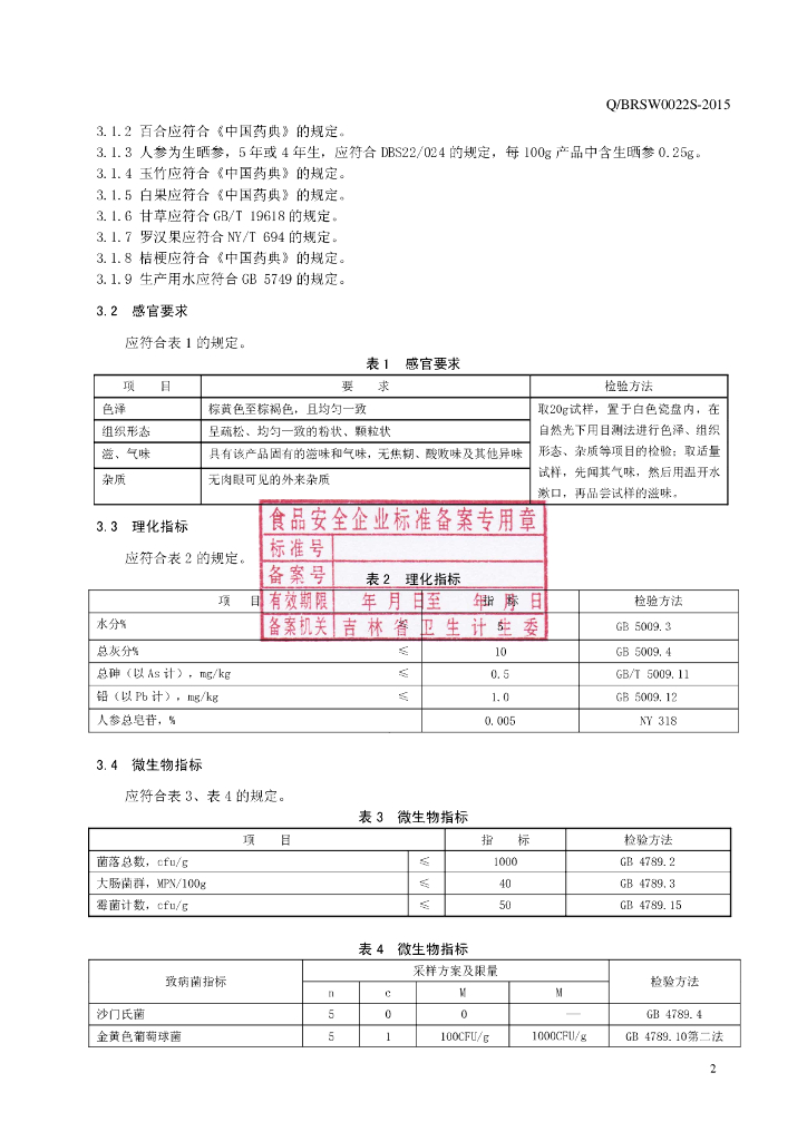 Q/BRSW 0022S-2015 通化博仁生物科技有限公司 杏仁百合粉