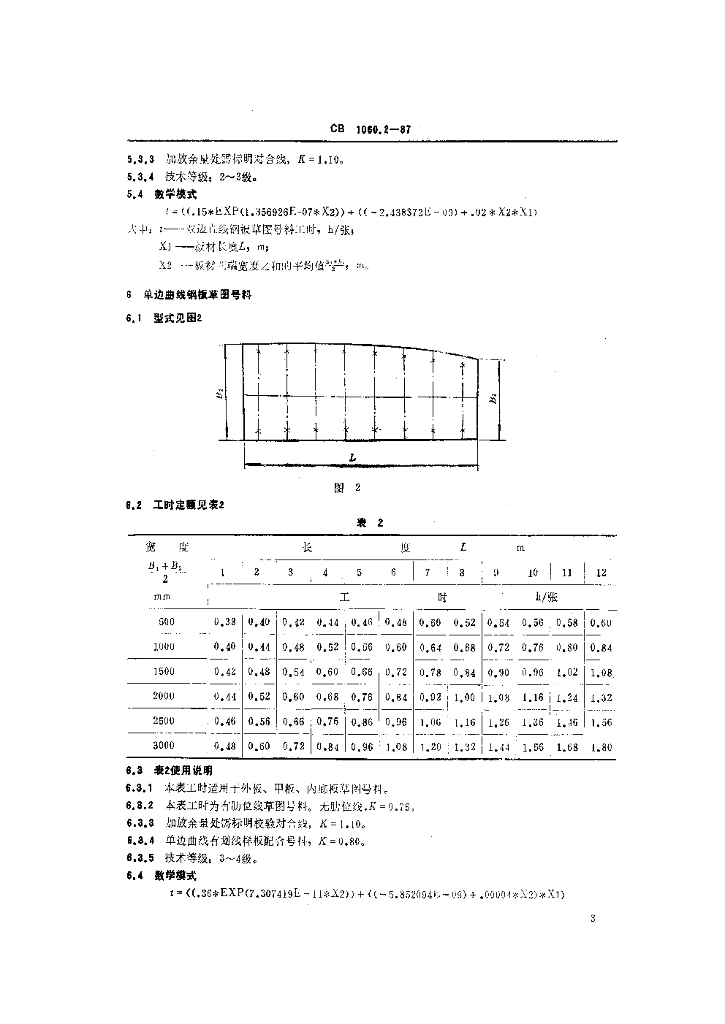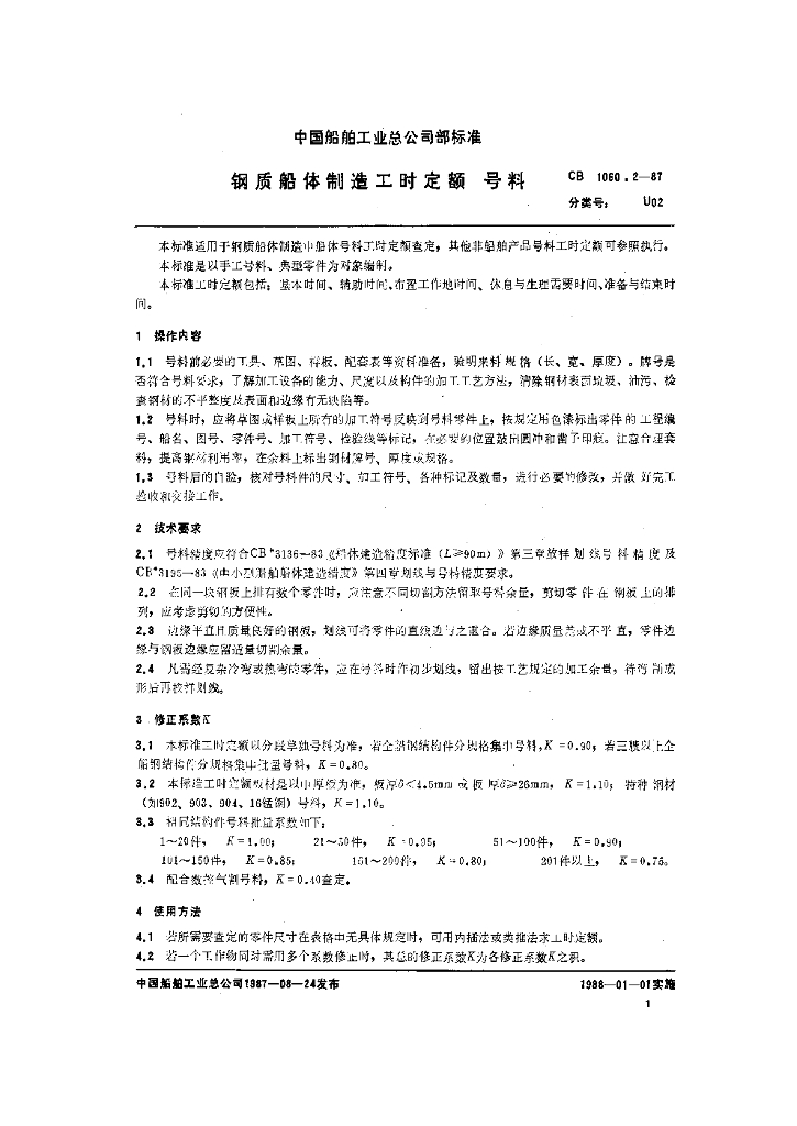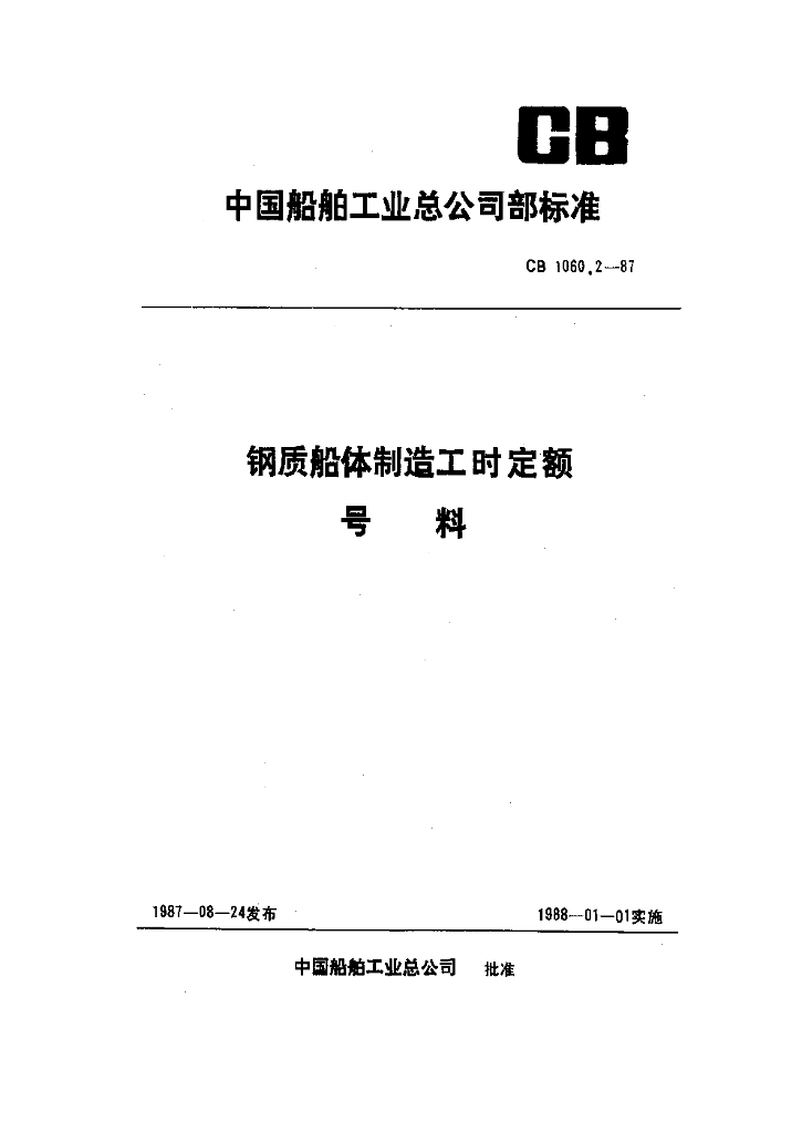 CB 1060.2-1987 钢质船体制造工时定额号料