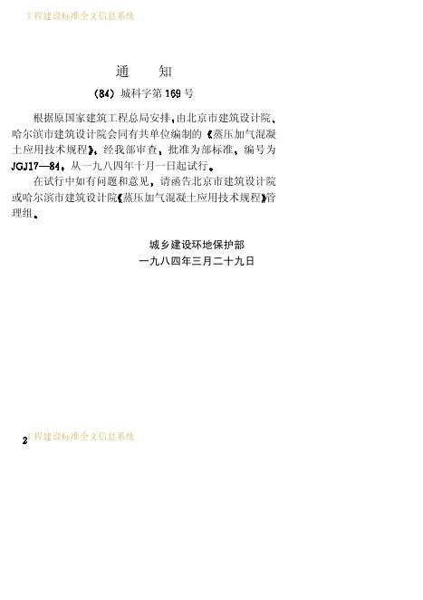 JGJ 17-1984 蒸压加气混凝土应用技术规范