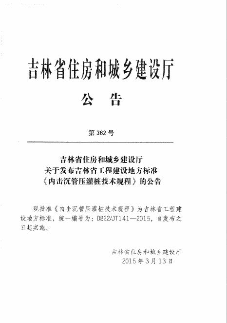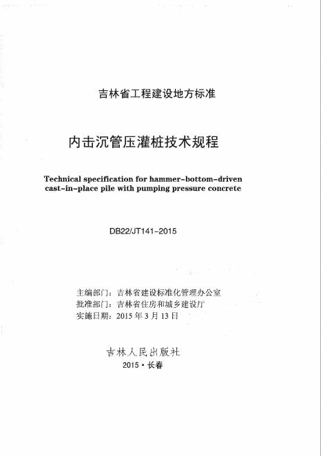 DB22/JT 141-2015 内击沉管压灌桩技术规程