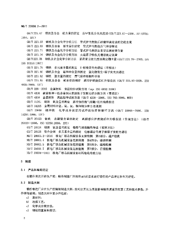 NB/T 20006.2-2011 压水堆核电厂用合金钢 第2部分:不承受强辐照的反应堆压力容器筒体用锰-镍-钼钢锻件