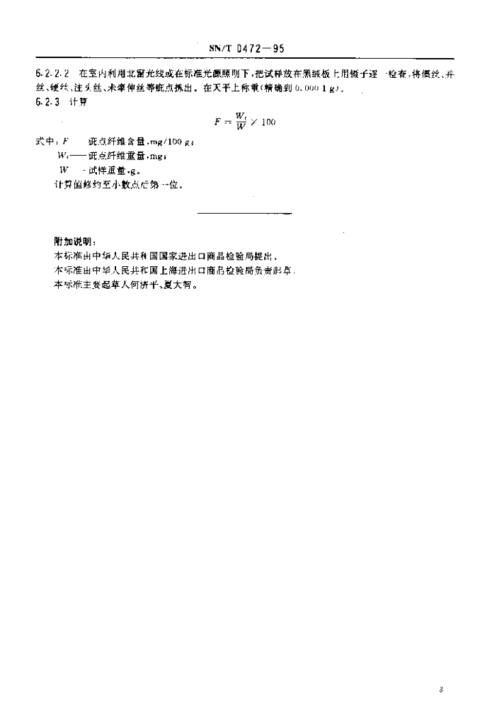 SN/T 0472-1995 进出口涤纶、腈纶短纤维的疵点含量测定方法