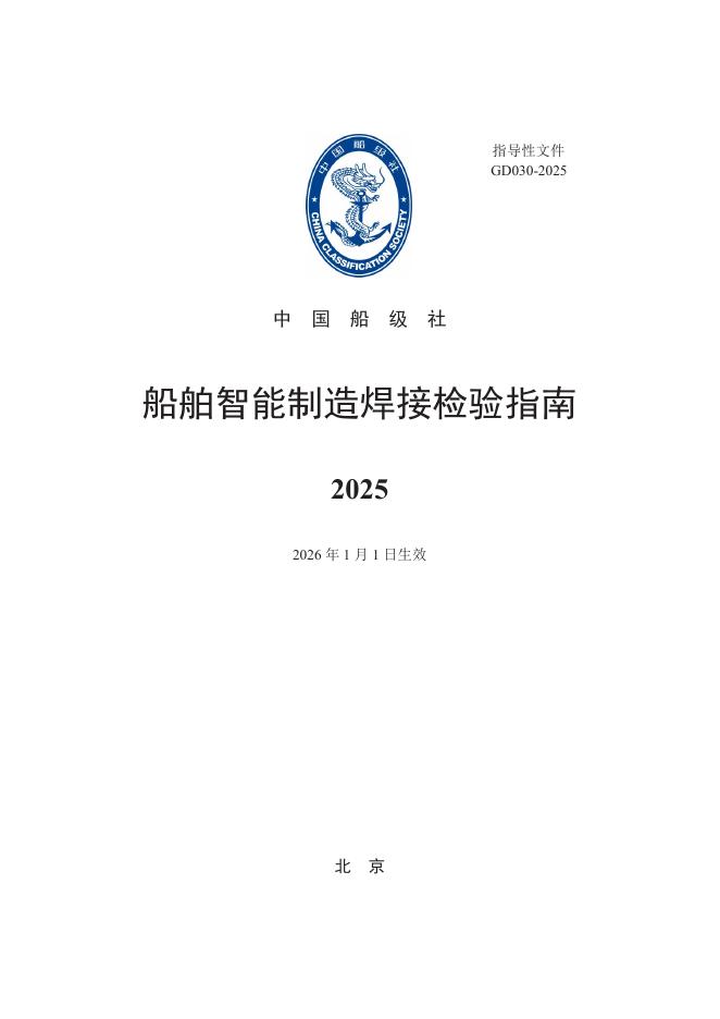 中国船级社(CCS):船舶智能制造焊接检验指南2025