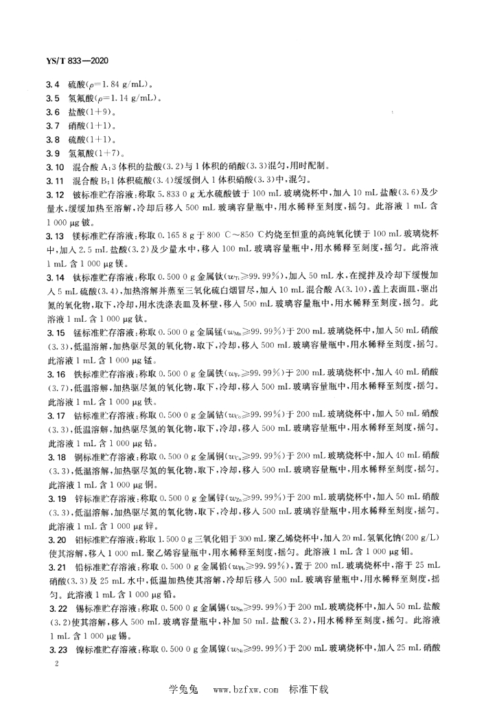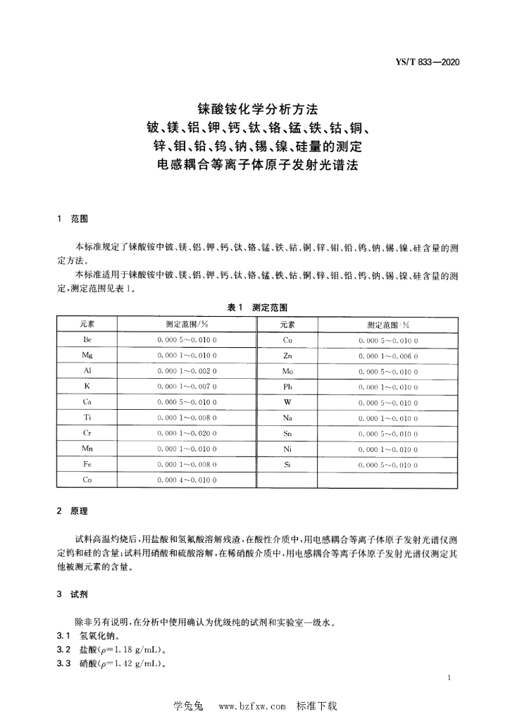 YS/T 833-2020 铼酸铵化学分析方法 铍、镁、铝、钾、钙、钛、铬、锰、铁、钴、铜、锌、钼、铅、钨、钠、锡、镍、硅量的测定 电感耦合等离子体原子发射光谱法