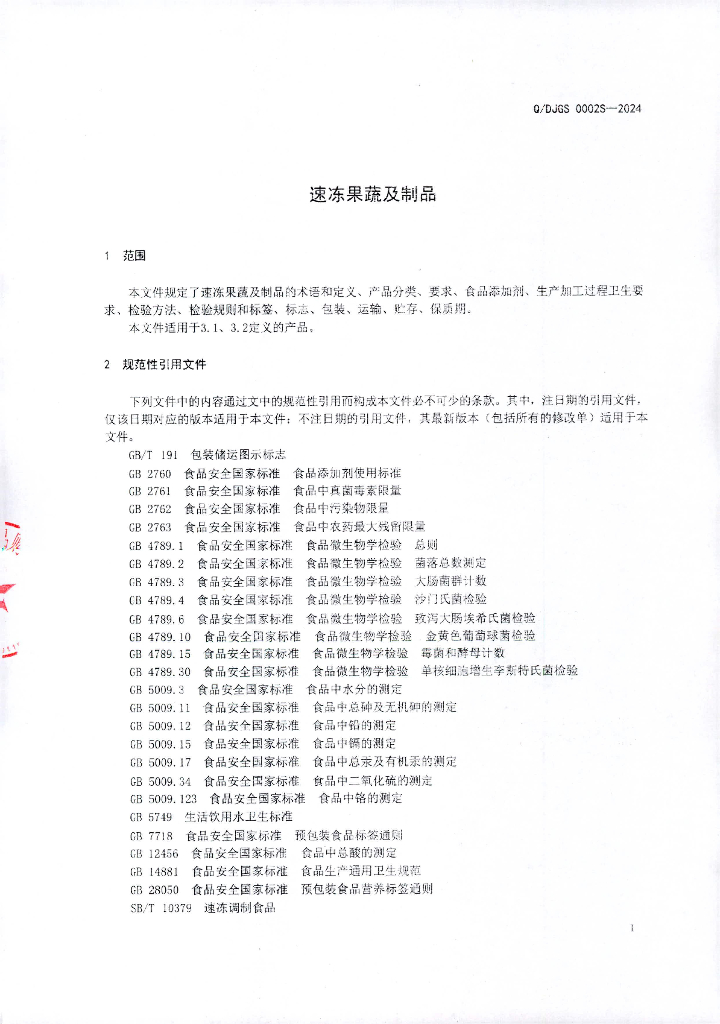 Q/DJGS 0002S-2024 速冻果蔬及制品