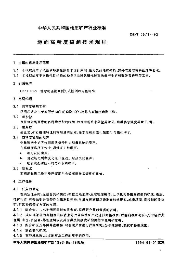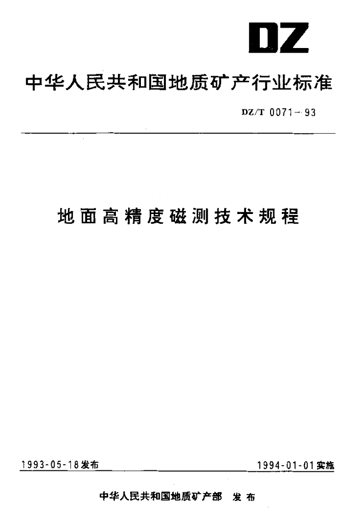 DZ/T 0071-1993 地面高精度磁测技术规程