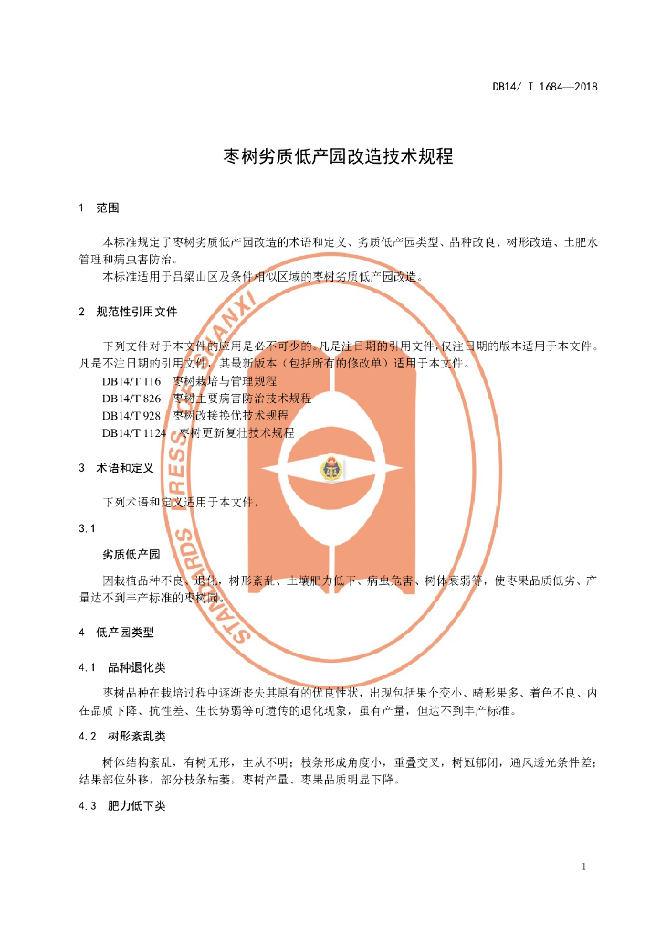DB14/T 1684-2018 枣树劣质低产园改造技术规程