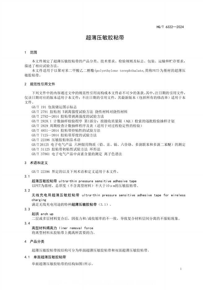 HG/T 6322-2024 超薄压敏胶粘带