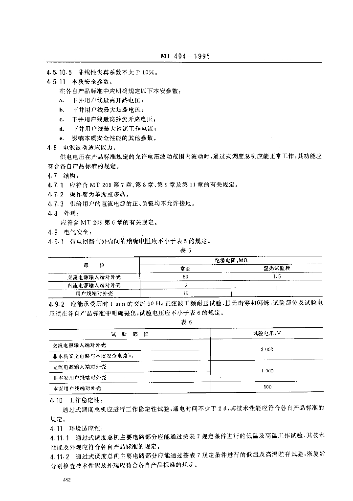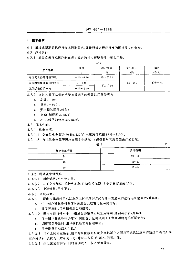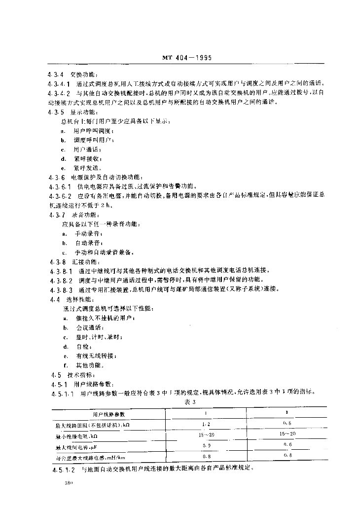MT 404-1995 煤矿生产调度通过式电话总机通用技术条件