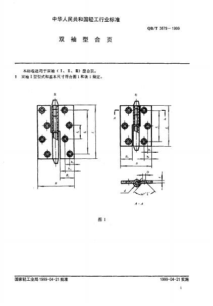 QB/T 3879-1999 双袖型合页