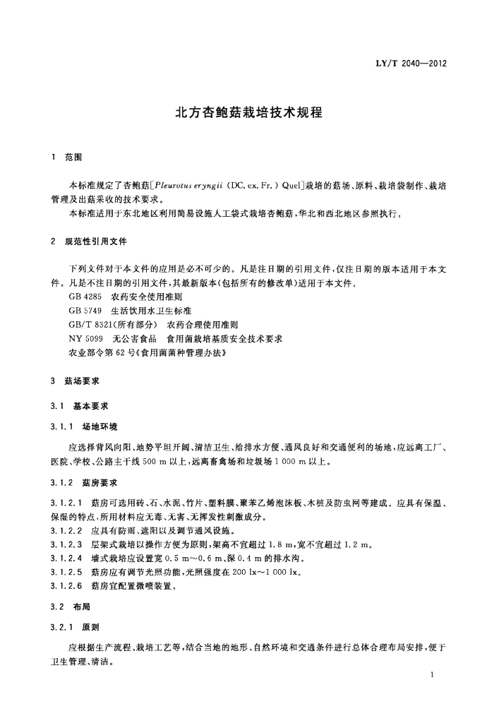 LY/T 2040-2012 北方杏鲍菇栽培技术规程