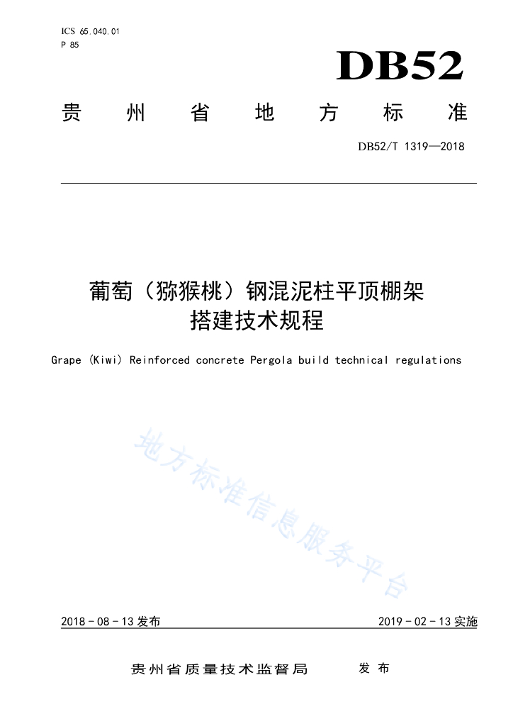 DB52/T 1319-2018 葡萄(猕猴桃)钢混泥柱平顶棚架搭建技术规程