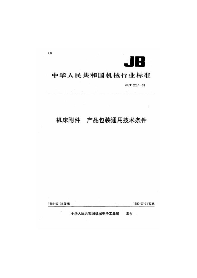 JB/T 3207-1991 机床附件产品包装通用技术条件