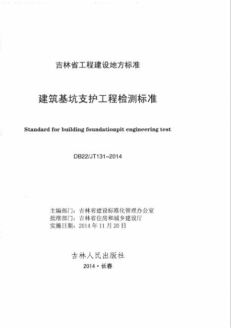 DB22/JT 131-2014 建筑基坑支护工程检测标准