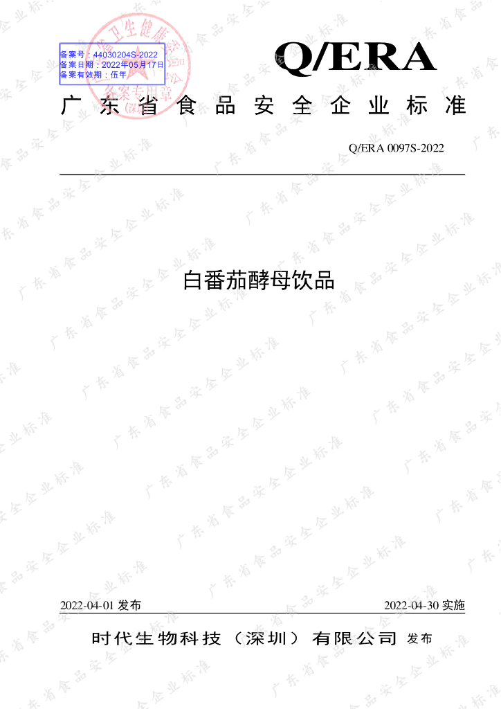 Q/ERA 0097S-2022 白番茄酵母饮品