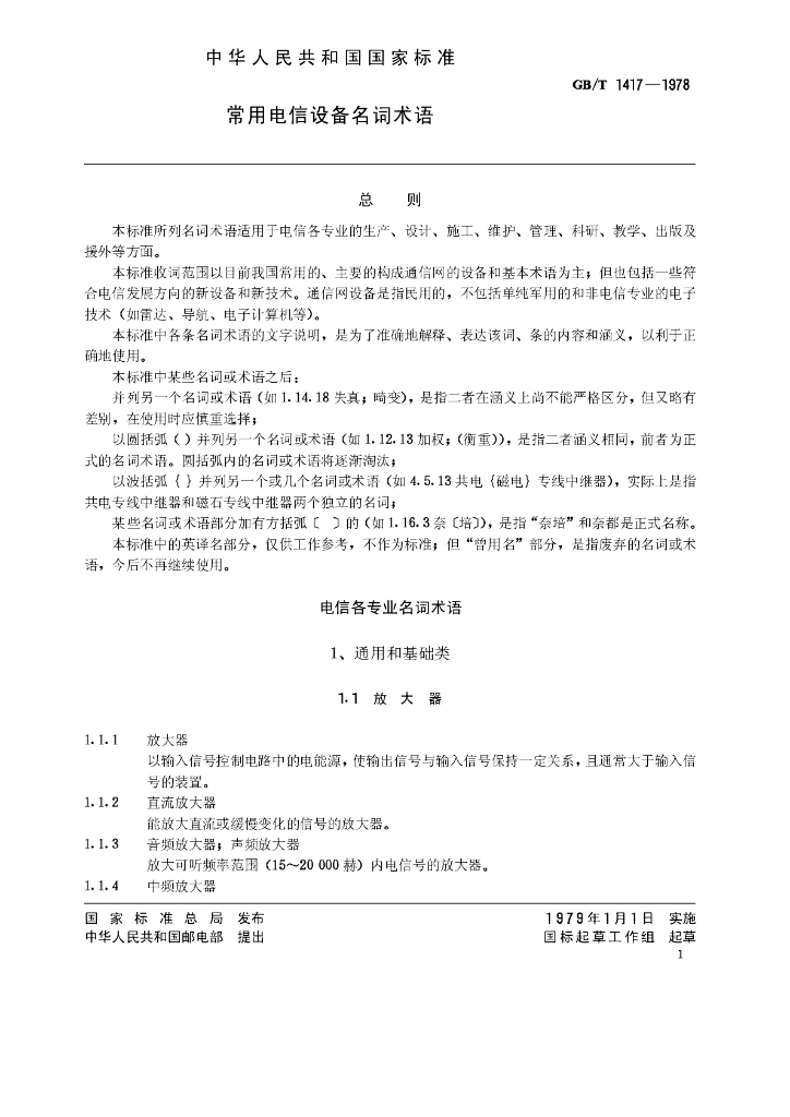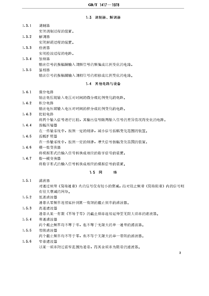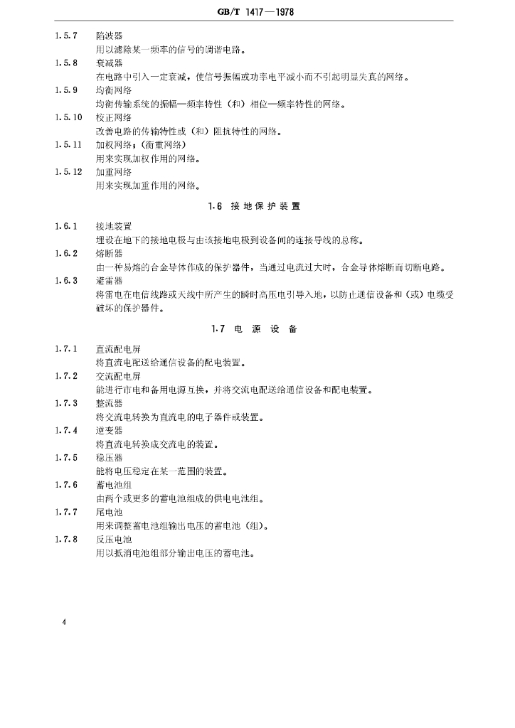 GB/T 1417-1978 常用电信设备名词术语