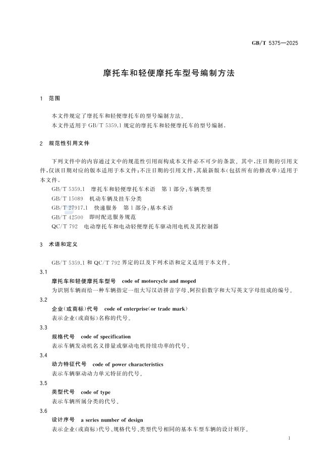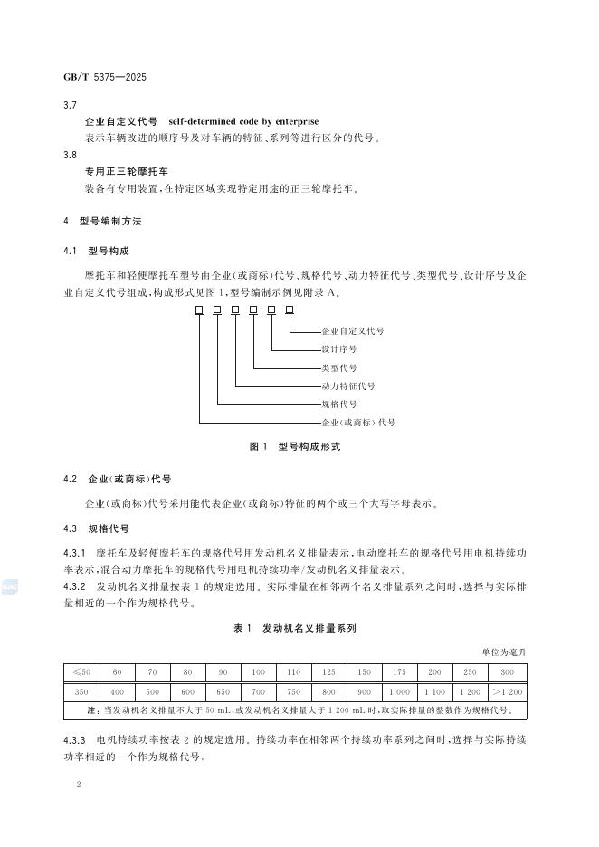GB/T 5375-2025 摩托车和轻便摩托车型号编制方法