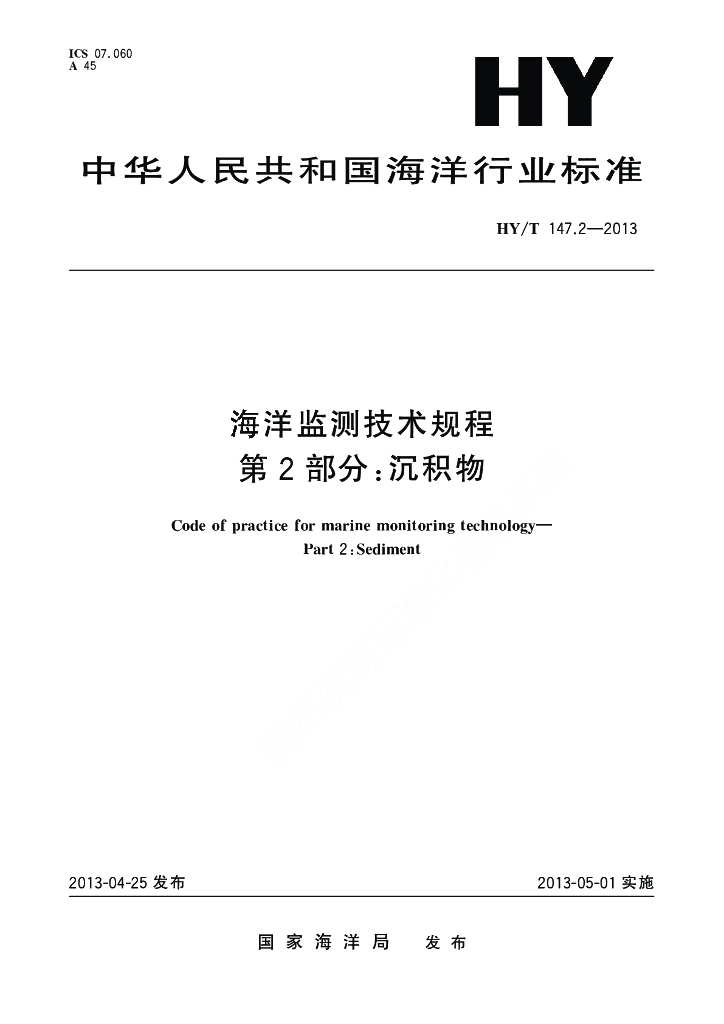 HY/T 147.2-2013 海洋监测技术规程 第2部分:沉积物