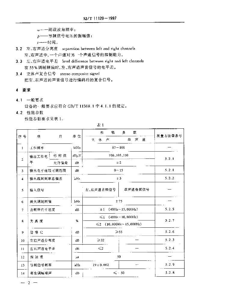 SJ/T 11120-1997 电视和声音信号的电缆分配系统 设备与部件调频立体声和单声道调制器通用规范