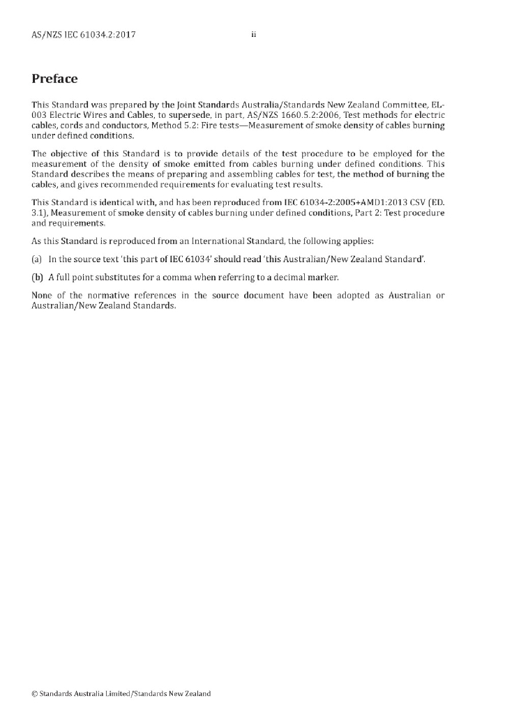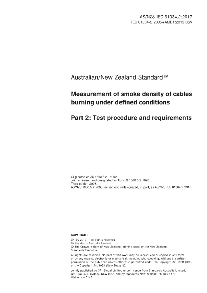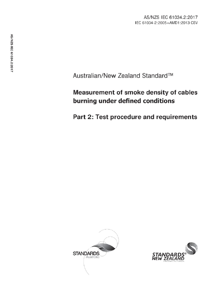 AS/NZS IEC 61034.2:2017 电缆在特定条件下燃烧的烟密度测定 第2部分 试验步骤和要求